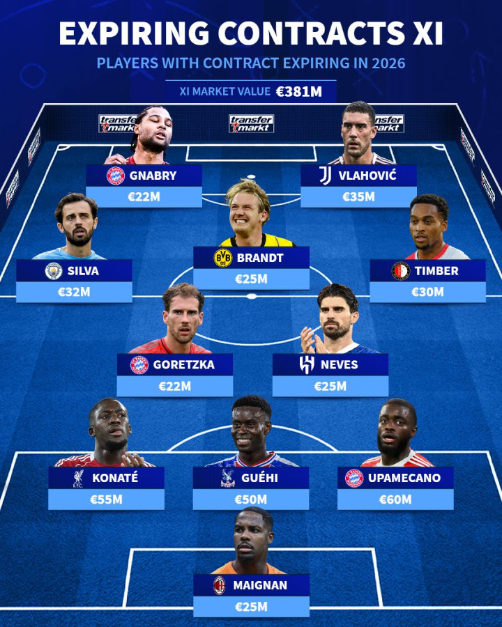 虎扑11月09日讯德国转会市场盘点了合同在明年到期的球员,并组成了一套最佳阵容。
