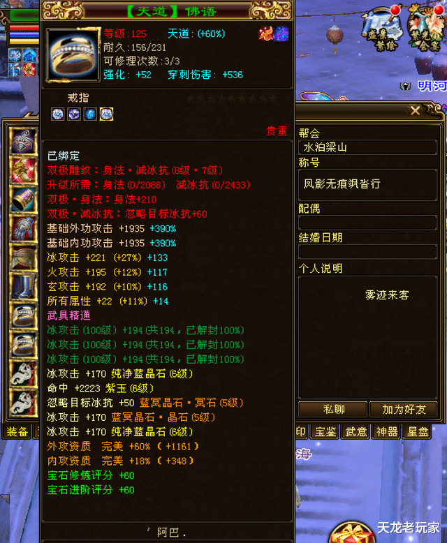 小编在一位6级武当身上看到的帝王绿九星戒指:冰火玄三属性、还带所有属性!