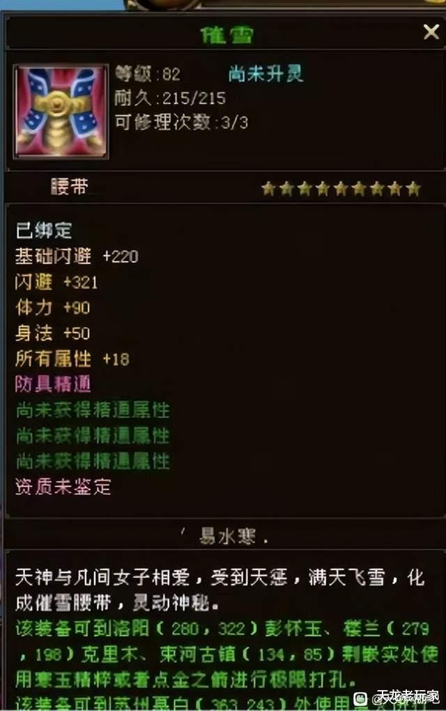 再来一个82级帝王绿腰带:闪避、体力、身法、所有属性!虽然只有四个词条,但是就差个会心防御就是全属性啊!