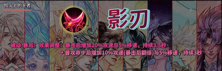 影刃这波加强,和敖隐有很大关系,通过敖隐的出装变化带来的强度暴涨可以想到如今暴击流英雄的窘态,从而在策划直播的时候也直言,暴击流强度曲线有问题,且强势英雄都走了法球流。