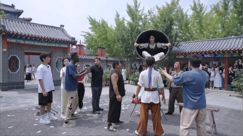 四位外国留学生 —— 埃及的桑英杰、加纳的王富健、埃及的李小龙、古巴的王以然,带着对杂技的好奇踏上这片土地。他们手持碗、扇子、轮子等道具,在主持人龚韵熹的带领下,与杨迪、袁姗姗组成 “闯关战队”,开启 “2025 年度吴桥杂技体验官” 的争夺。撂地表演的热闹、转碟空竹的灵巧、蹬大缸的震撼、三仙归洞的玄妙…… 街头巷尾的杂技绝活,让留学生们直呼 “不可思议”,也让观众跟着镜头沉浸式感受 “世界杂技看中国,中国杂技看吴桥” 的底气。