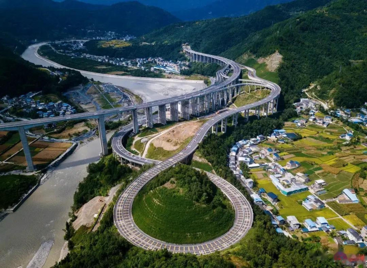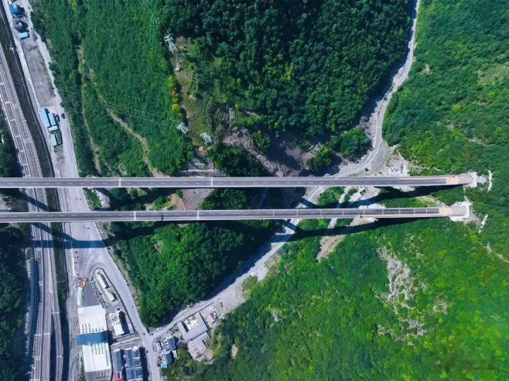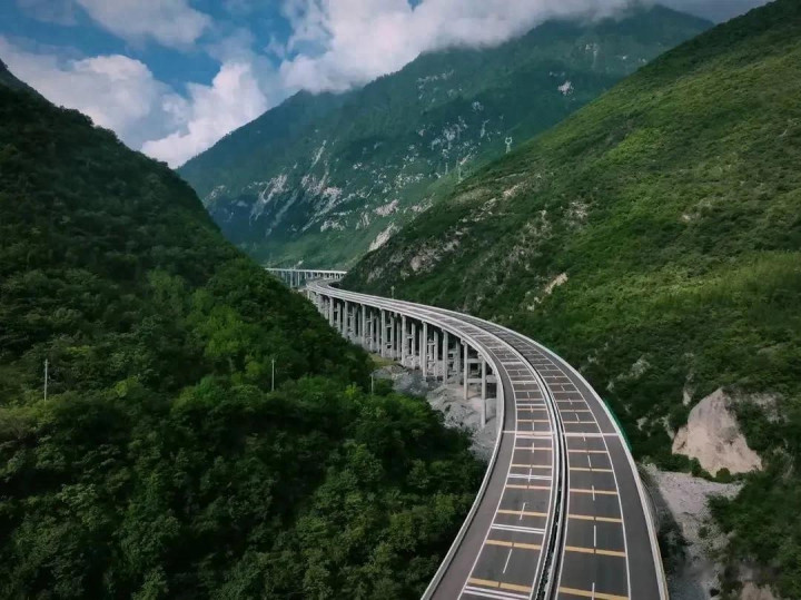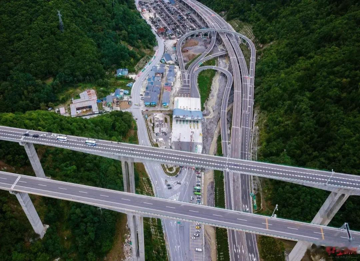 蜀道集团公路设计院的周海波副院长揭秘,关键在于“把坡度摊开”。整条高速线路长,设计师就把总爬升高度分摊在全程,这样开车时不会遇到突然的陡坡,安全感拉满。但也有特殊情况,比如平武互通,这里是全线最大的互通立交桥,高达105米,还设了收费站方便当地人上下高速。可受地形限制,没法修长距离缓坡,设计师就想出了“8”字形匝道桥的办法,快速降低高度。