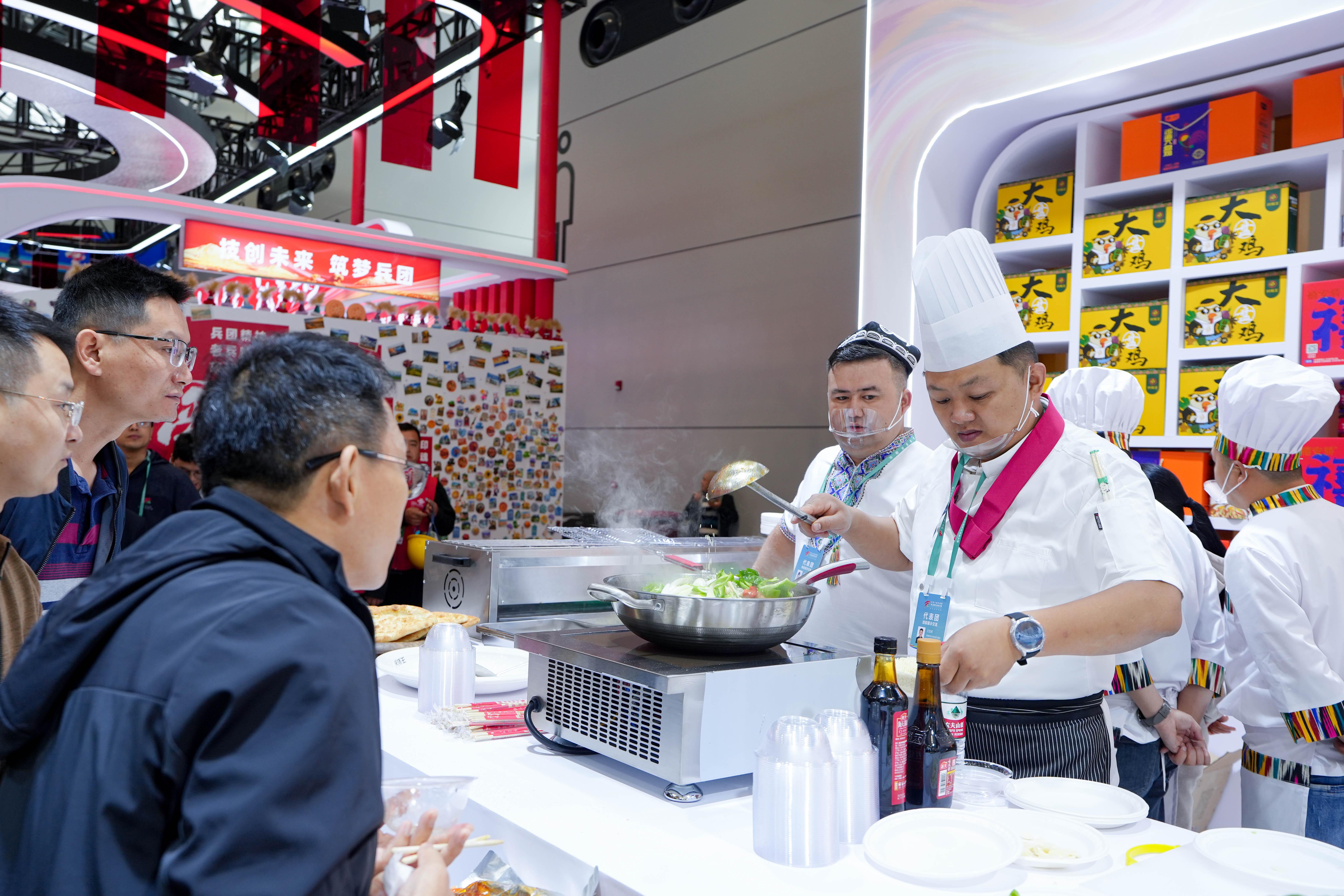 在各路高手的精心操作下,各省美食纷纷登场——新疆大盘鸡、天津煎饼馃子、四川串串香、福建沙县小吃、陕西凉皮、兰州拉面……花样繁多的美食让人忍不住感叹:原来“国赛”也能这么接地气!
