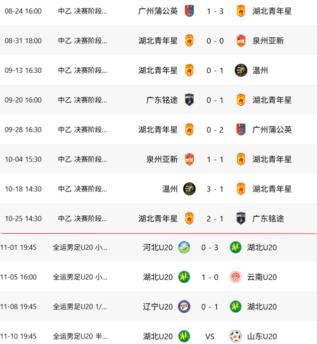 与此同时,湖北队除了部分中超中甲强援外,主要班底还是刚刚在中乙降级的湖北青年星,球队在今年的中乙联赛排名第21名,遗憾降级,只能期待替补机会留在职业联赛。他们在全运会表现强势,联赛拉胯,原因很多。