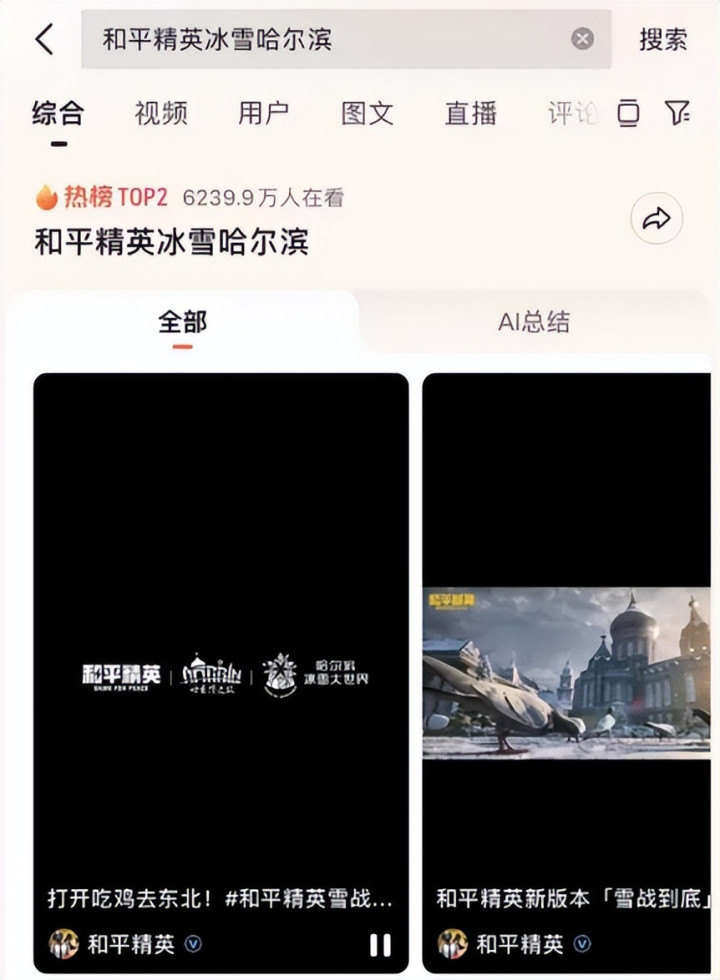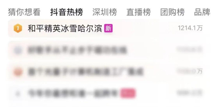 而如果你这几天也和我一样不想出门只想躺着刷抖音的话,应该已经看到了在抖音上有一个词条也和今年的冬天一样突然就出现在了前排:和平精英冰雪哈尔滨。
